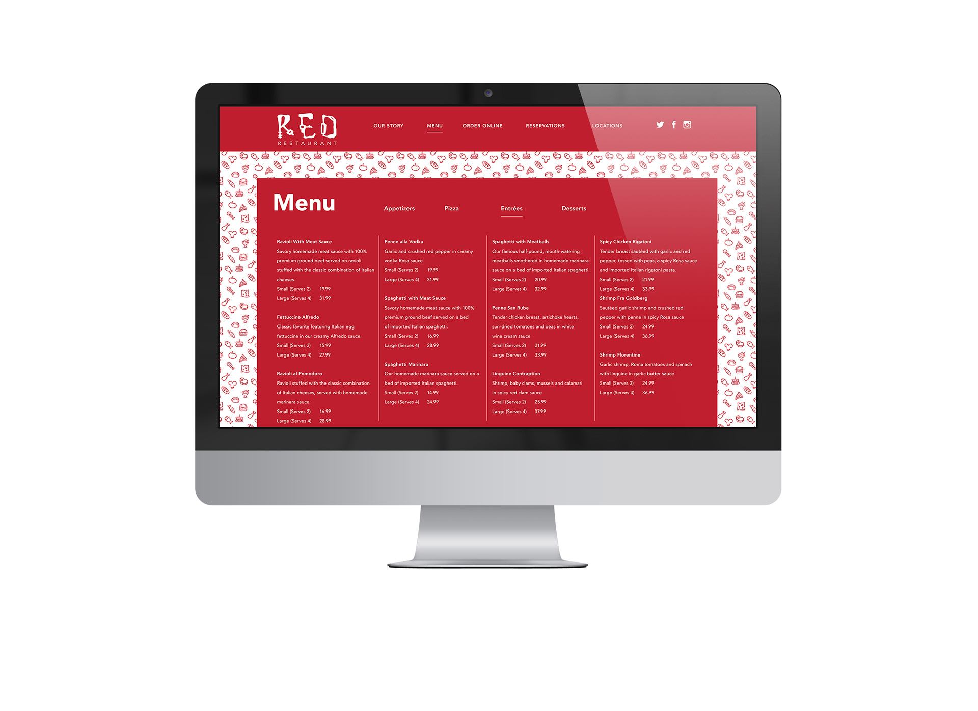 RED Restaurant concept is based off of the drawings of Rube Goldberg, he was best known for his mouse trap styled contraption drawings. RED is full of fun and exciting things to do and see. RED is a family fun environment where the kids can play but the adults can also join in the fun. Filled with both kid and adult games and food this is the place where you come to play and stay to eat. RED was in need of a fun identity that will still reflect the talents of Rube Goldberg. The logo needed to be unique, exciting and show the movement that Rube Goldberg’s creations contain. The restaurant itself needed to be bright yet sophisticated to attract both adults and families. The final result was a unique logo that works well to define the love of Rube Goldberg and fun that all can enjoy. The logo translated well onto the website and within the restaurants décor and packaging. The website was created to easily view the menu and quickly make reservations. An app was also created for the kids to quickly download giving them the time to play and learn about Rube Goldberg.